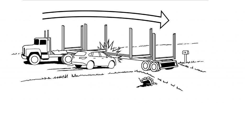 At the end of a late fall workday in the eastern U.S., a driver was backing his tractor and empty log trailer into his driveway off a rural two-lane road. It was clear, dry, and dark outside.