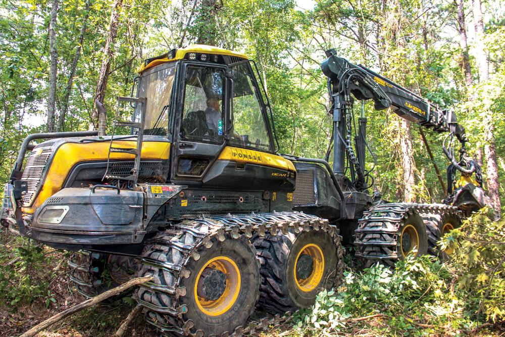 Kirk typically mans the harvester while John Porter drives the forwarder, but both men can run either machine. Jamie Parnell at Equipment Linc Inc., in Maplesville represents Ponsse for the Southeast. Sanders changes oil and filters every 300 hours with Mobil 1 synthetic 10w-40. They use ISO-68 hydraulic oil, grease the head and fill up bar oil daily.