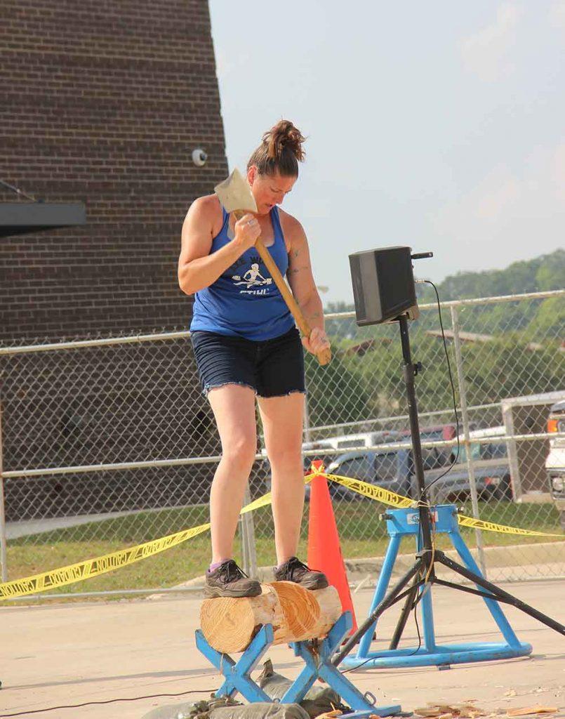 Axe Women Loggers of Maine displayed their skills at the Mississippi Ag & Outdoor Expo August 6-8 2021. The all-female team come from across the country and perform logging sports including: axe throwing, underhand chop, crosscut sawing and crowd favorite, log rolling. Alissa Wetherbee, co-owner of Maine team, is an IronJill, meaning she chops, saws and logrolls. Her husband and co-owner, Mike Wetherbee, officiated the event.