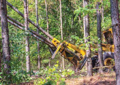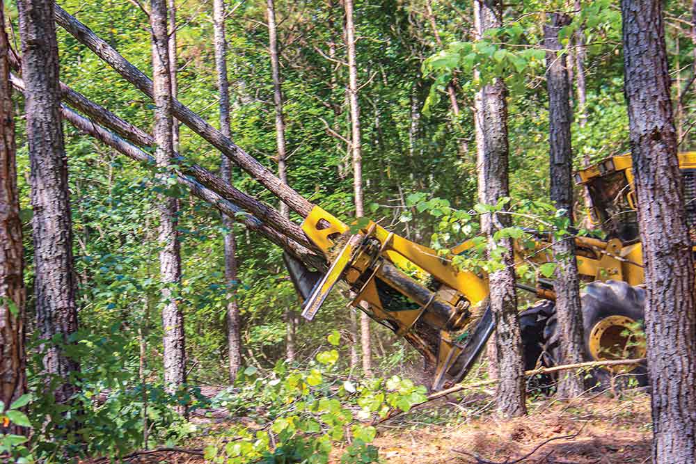 He’s upped his production considerably since that time. And then some. The company now averages 80 loads per week, 45% sawlogs and 55% pulpwood. Wilson estimates his crews cut or thin some 40 to 50 acres a week of mostly plantation pine with the occasional hardwood loads.