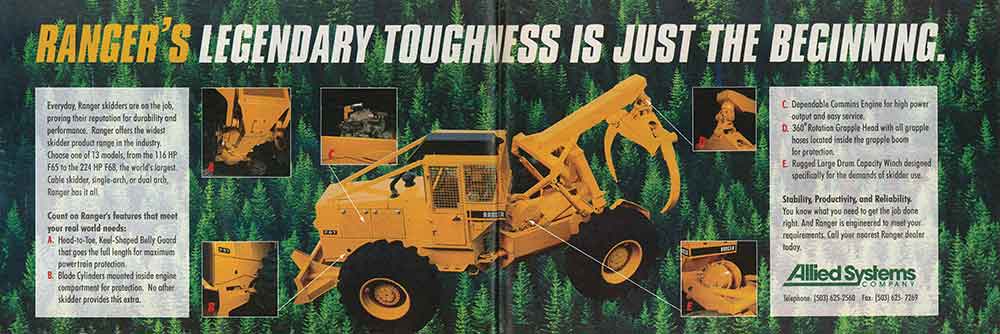 A rigid frame 4×4 wheeled skidder, the FWD Blue Ox, was introduced on the West Coast in 1952. Clark Equipment tested a prototype wheeled skidder in Canada in 1955, and in 1956 Canadian company Timberland Machines Ltd., forerunner to Timberjack, introduced the rigid frame Timber Skidder.