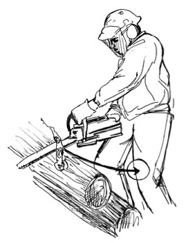 - Use proper saw techniques when limbing and trimming logs. When limbing large-diameter limbs on top of the tree trunk, it is better to limb with pushing chain (on top of the bar), to avoid contact with saw if the chain is pinched or the limb is severed more easily than expected.