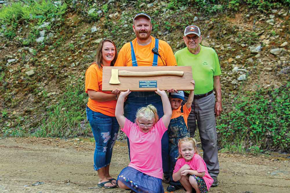 This summer, Secondhand Tradition owner Lindsey Collins (here with his dad, wife and kids) was named West Virginia’s Logger of the Year 2022.