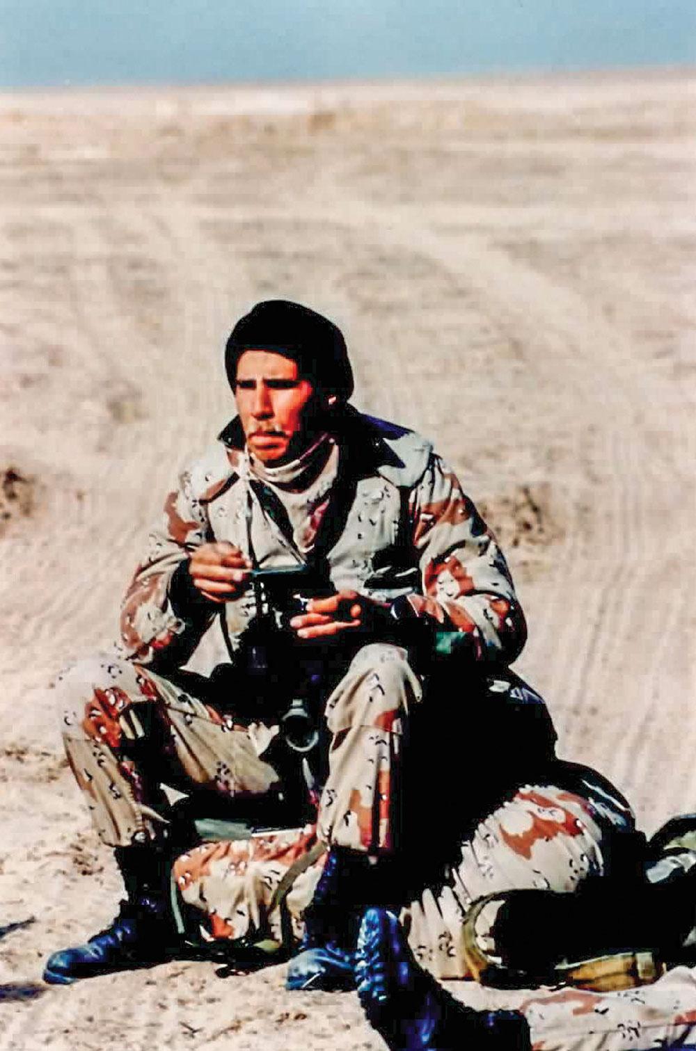 “We were close enough that you could see the Iraqis across the border in daylight,” Sanders says. “We lived in a hole all day.” At night they provided interlock patrols or relocated positions and dug new foxholes before the sun came back up. Sanders says his command in Saudi Arabia referred to them as the “speed bump” because they were non-mechanized infantry displaying a show of coalition forces. “We were strict infantry so if they would have attacked with armor they would have went right through us without slowing down.”
