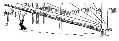 BACKGROUND: On a summer morning in the South, a timber cutter was manually felling hardwood timber. Ground conditions were dry, winds were relatively calm, and the terrain was fairly level.