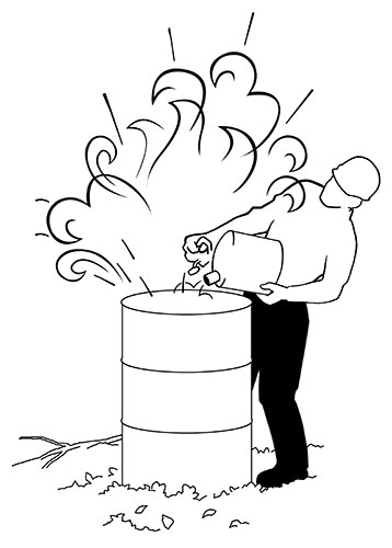 UNSAFE ACTS AND CONDITIONS: The wood fire in the burn barrel was burning very slowly. The crew member grabbed what he thought was a container of diesel fuel and poured some of the diesel fuel into the fire. Unfortunately, it was later discovered that the gas station where they filled the diesel can that morning had had gasoline pumped into the holding tank by the vendor—so there was gasoline in the portable container.
